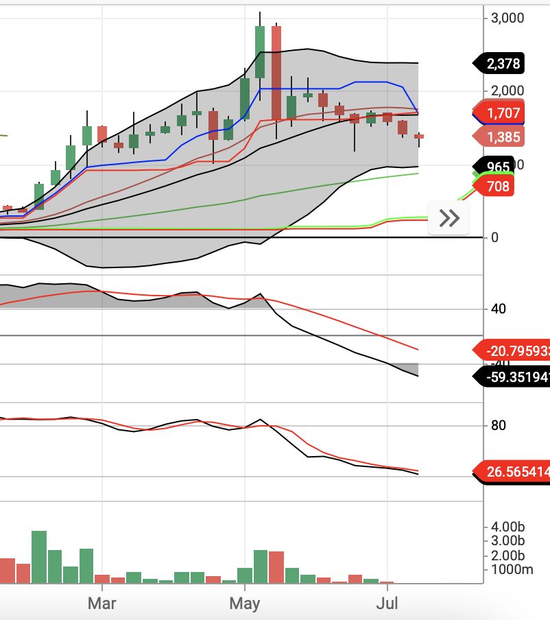 에이다는 지난 상승장에서 상승폭이 매우 좋았다. 그에 비해 조정은 상대적으로 엄청 크다고 할 순 없다. 주봉은 bb가 많이 좁혀진 상태로 밑꼬리가 길어진 상황이다. 일봉은 어제 도지코인처럼 일봉에서 정배열을 앞두고 있다. 어제에이어 오늘도 확연한 상승 시도타이밍이다. 다른 메이저 알트도 마찬가지인데 이 때 강하게 치고 올라가는 코인이 생겨주면 마음편히 투자를 이어갈 수 있다.