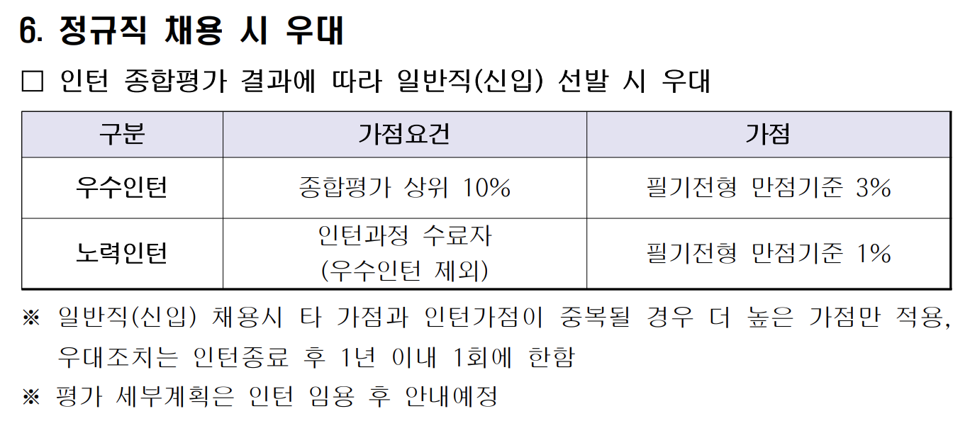 이번 인턴은 우수인턴의 경우 필기전형에 가점이 주어진다. 이점이 메리트로 작용할 것으로 보인다.