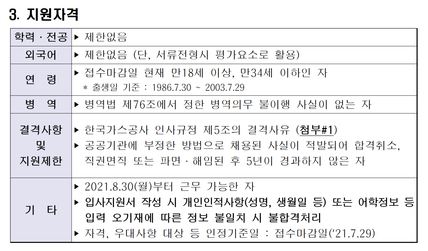 병역은 군필만 지원 가능하다.