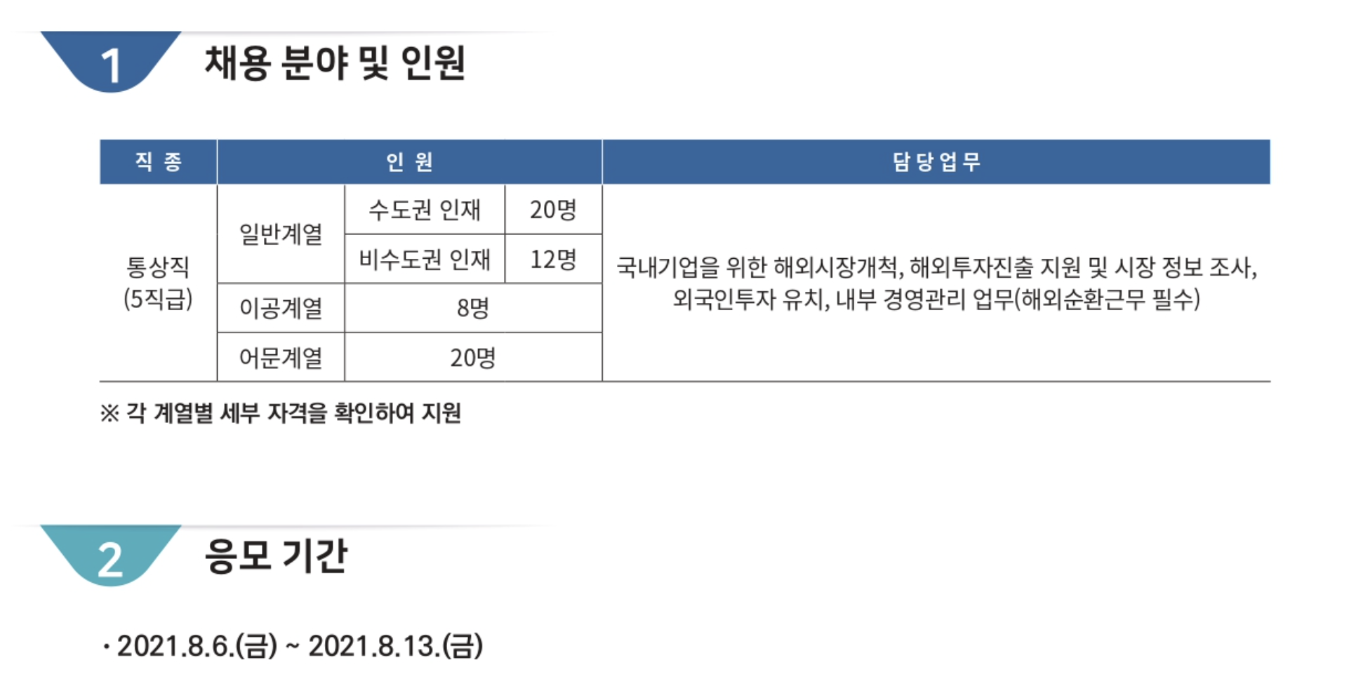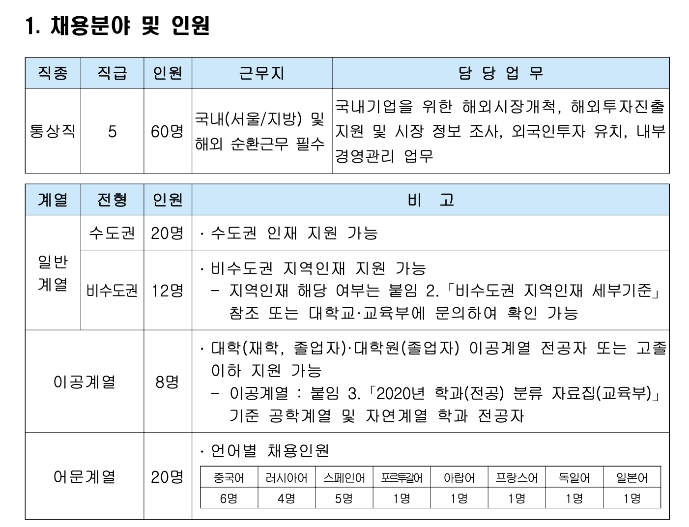 - ※ 통상직은 해외 순환근무가 필수인 바, 영어를 통한 업무 교류가 필수 업무로
