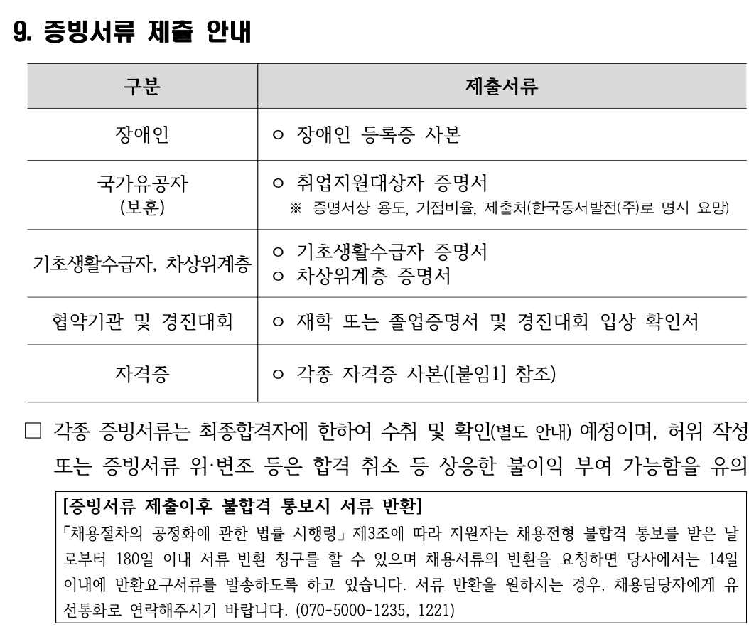 채용절차중 수집한 정보는 관련법령에 의거 일정기간 후 파기 예정입니다. 가점사항은 관련 법규·지침 및 한국동서발전(주) 자체 기준에 따라 시행·적용
